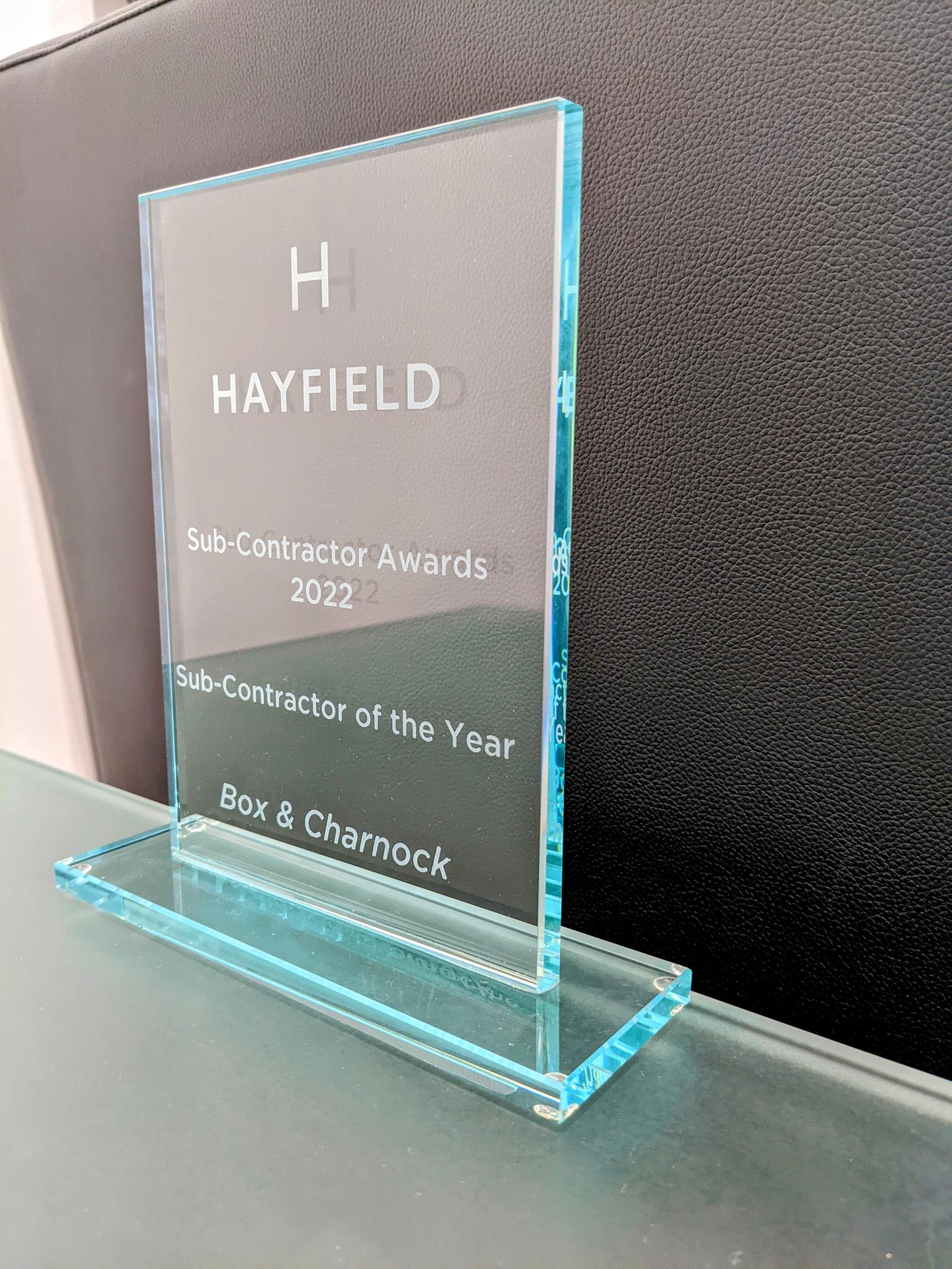 Box & Charnock Ltd are delighted and proud to be awarded the ‘Subcontractor of the Year’ by our Client, Hayfield Homes.